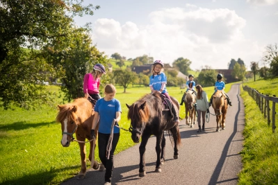 Mind. eine Stunde Reitunterricht oder geführtes Reiten pro Tag (Unterrichtsform je nach Hof unterschiedlich)